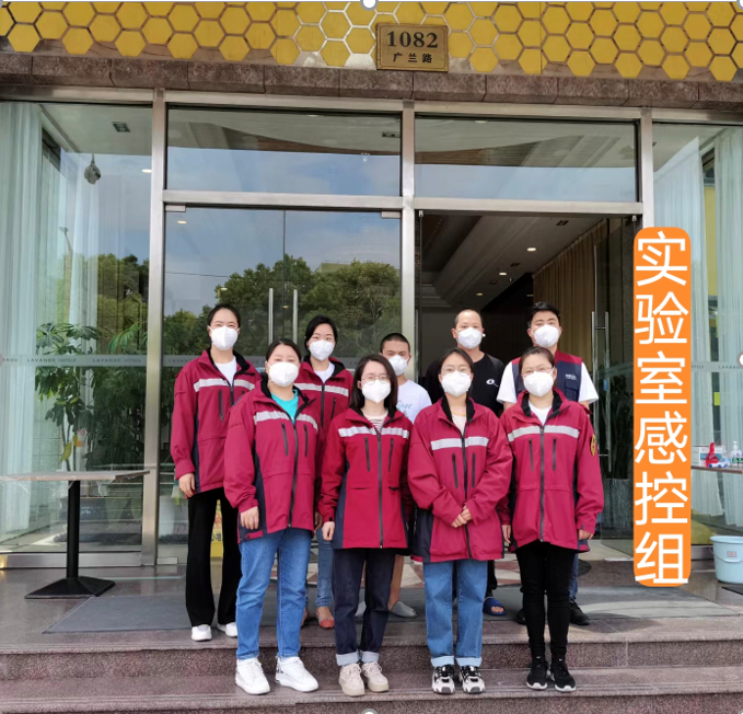 二、感染防控,安全保障 1.实验室感控 在解码气膜实验室,针对实验室实际情况,许丹提出生物安全风险点,并多次撰写院感评估报告,率先提出并落实开展实验室环境监测。同时,许丹作为生物安全员,监督并协助队友防护服的穿脱,以及实验室的消毒工作。在之江生物实验室,每班实验前,对实验室环境进行全覆盖采样监测,以便及时了解实验室污染情况。