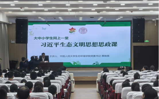 近日,中国人民大学生态环境学院“大中小同上一堂思政课” 活动在巴中师范附属实验小学举行。本次活动以“学习习近平生态文明思想,拥抱绿色生活,守护美丽家园”为主题,近200名大中小学师生同堂共学。