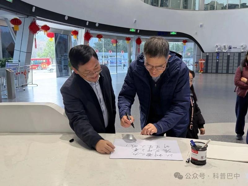 题词明志:以科普之力,创未来之城 调研尾声,成会明院士满怀对家乡科技事业的热忱,向广大科技工作者及青少年一代送上真挚期许。他祝愿全市科技工作者在新的一年里勇攀高峰、再创佳绩;殷切寄语巴中青少年,希望他们永葆科学好奇心,未来以巴中儿女的智慧与力量,为中国跻身世界科技强国贡献光和热。 临别之际,成院士欣然提笔,为巴中科技馆题写下饱含深意的十五字寄语:“以科普之力,强巴中之基,创未来之城!”字短情长——这既是科学家对家乡厚植创新沃土的深情点赞,更是一份关于“铸就发展根基、开创美好未来”的殷殷重托。成会明院士此行,犹如一粒种子,深深埋入家乡科技创新的沃土,必将激励更多巴中人仰望星空、脚踏实地,在科技强国的征程上奋力奔跑。