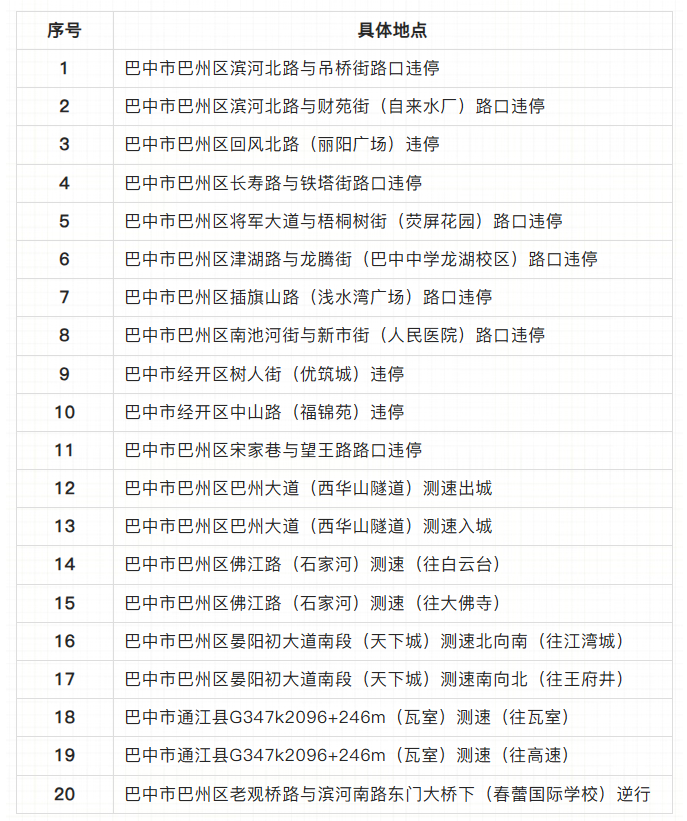 关于新设交通技术监控设备设置地点的公示(2025年度) 依据《中华人民共和国行政处罚法》《道路交通安全违法行为处理程序规定》等相关法律法规,现将本单位2025年度新设的交通技术监控设备设置地点公示如下: ![]() 请广大机动车驾驶人自觉遵守道路交通安全法律法规,文明驾驶、安全出行,共同维护良好道路交通环境。 特此公示。 巴中市公安局交通管理支队 2026年3月11日 |