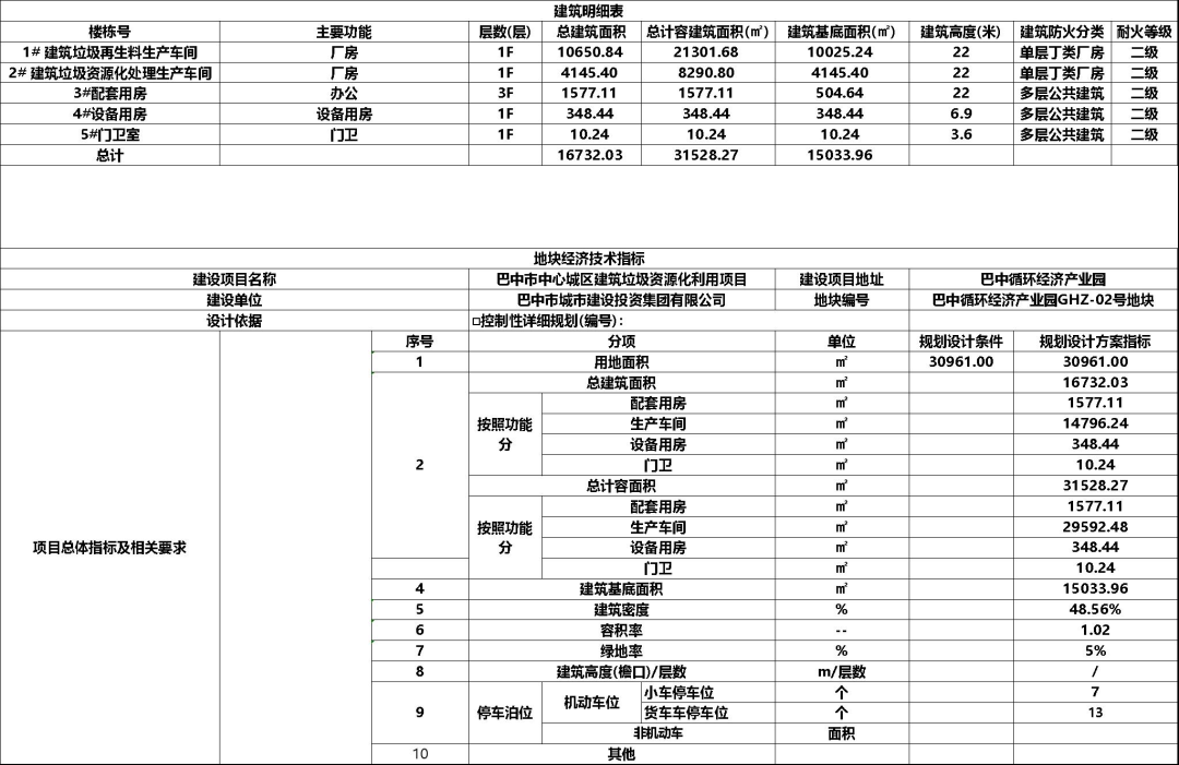 近日 《巴中市中心城区建筑垃圾资源化利用项目方案设计》获市人民政府批复 详情如下 ▽ 一、项目简介 巴中市建筑垃圾资源化利用项目位于四川省巴中市巴州区光辉镇哨台村1组,基底北侧临近小微企业孵化园,南侧与巴中市医疗废物处置中心相邻,交通便捷,区位优势明显。 巴中市循环经济产业园位于中心城区和光镇常年主导风下风向。根据固废处理设施污染大小,规划上将北侧布置循环经济企业孵化园,南侧布置固废处理设施。本次项目处于绿化隔离带南侧污染较大的固废设施区域。 巴中市建筑垃圾资源化利用项目旨在打造一个集建筑垃圾收集、分类、处理、资源化利用及环境管理于一体的综合性示范项目,其功能定位主要包括:建筑垃圾综合处理中心、再生资源生产基地、环保技术创新与示范平台、环保教育与宣传基地、循环经济产业链构建者。 二、效果图 总平面布置图 鸟瞰图 办公楼透视图 生产车间透视图 三、规划布局 |